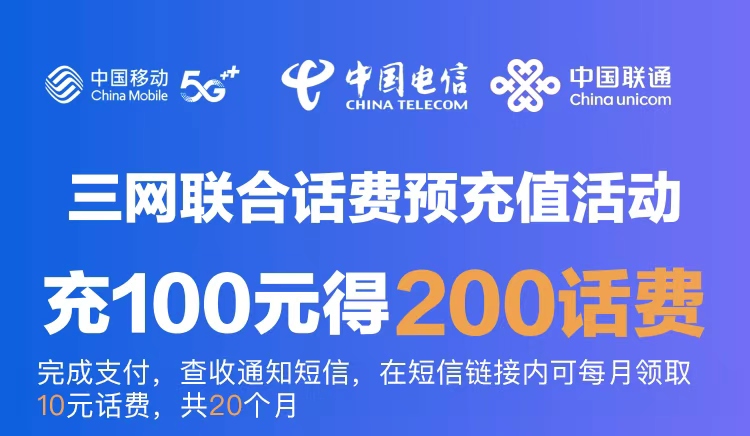 2.支付 100元参与话费月月领活动,可获得200元电话费,每月可手动领取10元话费。领取成功之后1-10分钟之内到账。
